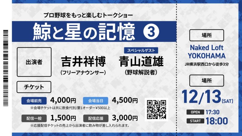 今回の「鯨と星の記憶③」は、26年ぶりの日本一に沸いた2024年、そしてペナントレース2位からCSファイナルステージで涙を呑んだ2025年という、歓喜と悔しさが入り混じった2年間を徹底的に語り合う場として企画されました。