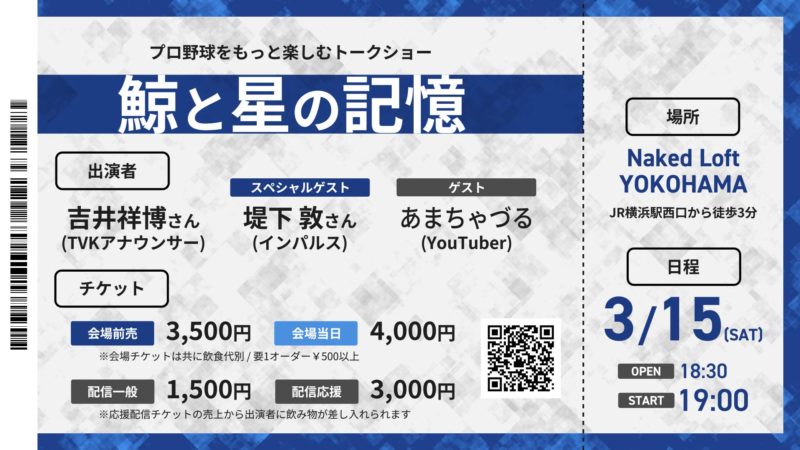 【横浜DeNAベイスターズファン集まれ!】歓喜と悔しさを分かち合うトークイベント「鯨と星の記憶③」開催!